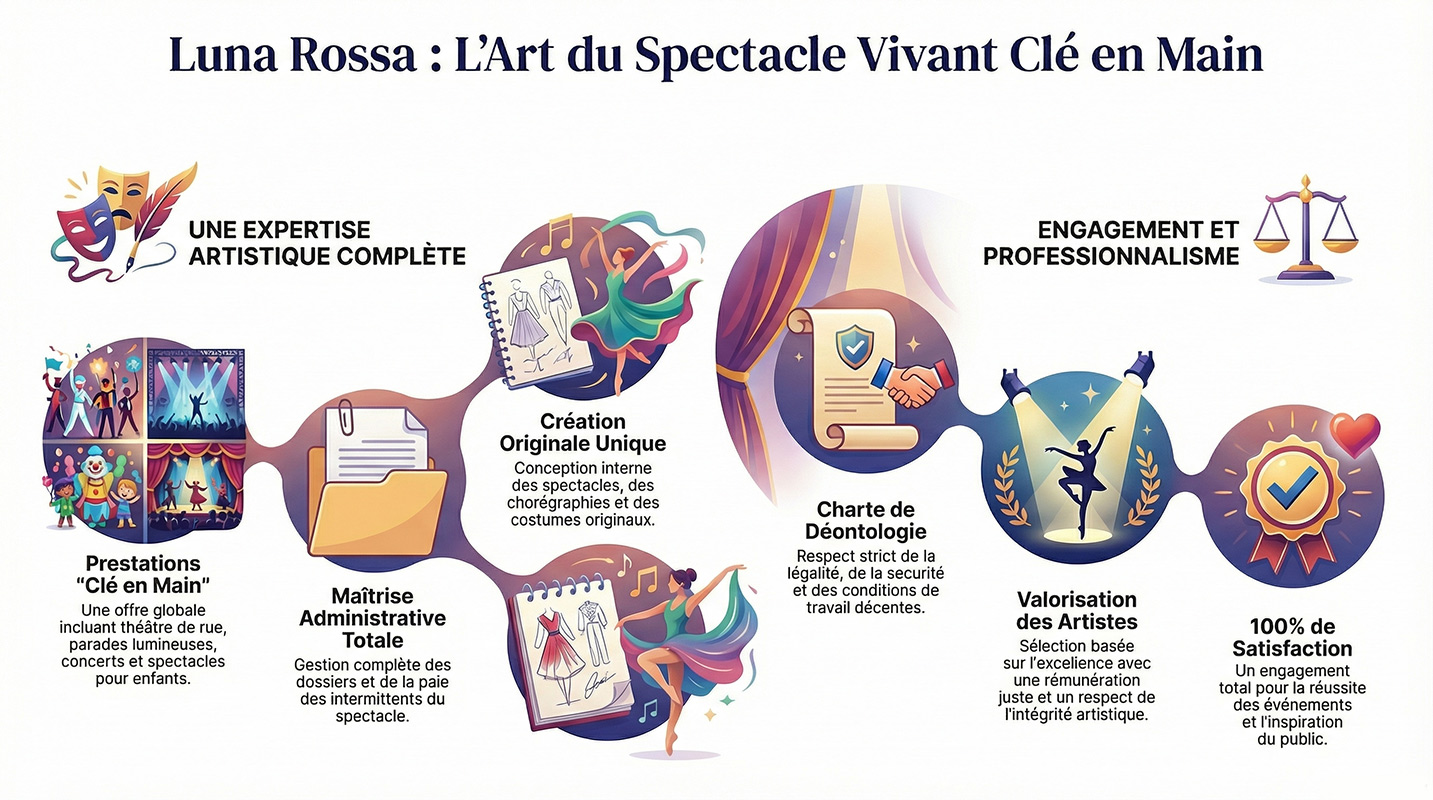 Luna Rossa est un véritable trait d’union entre les différents acteurs du spectacle vivant. Notre société présente des artistes de talent et des spectacles de qualité.
